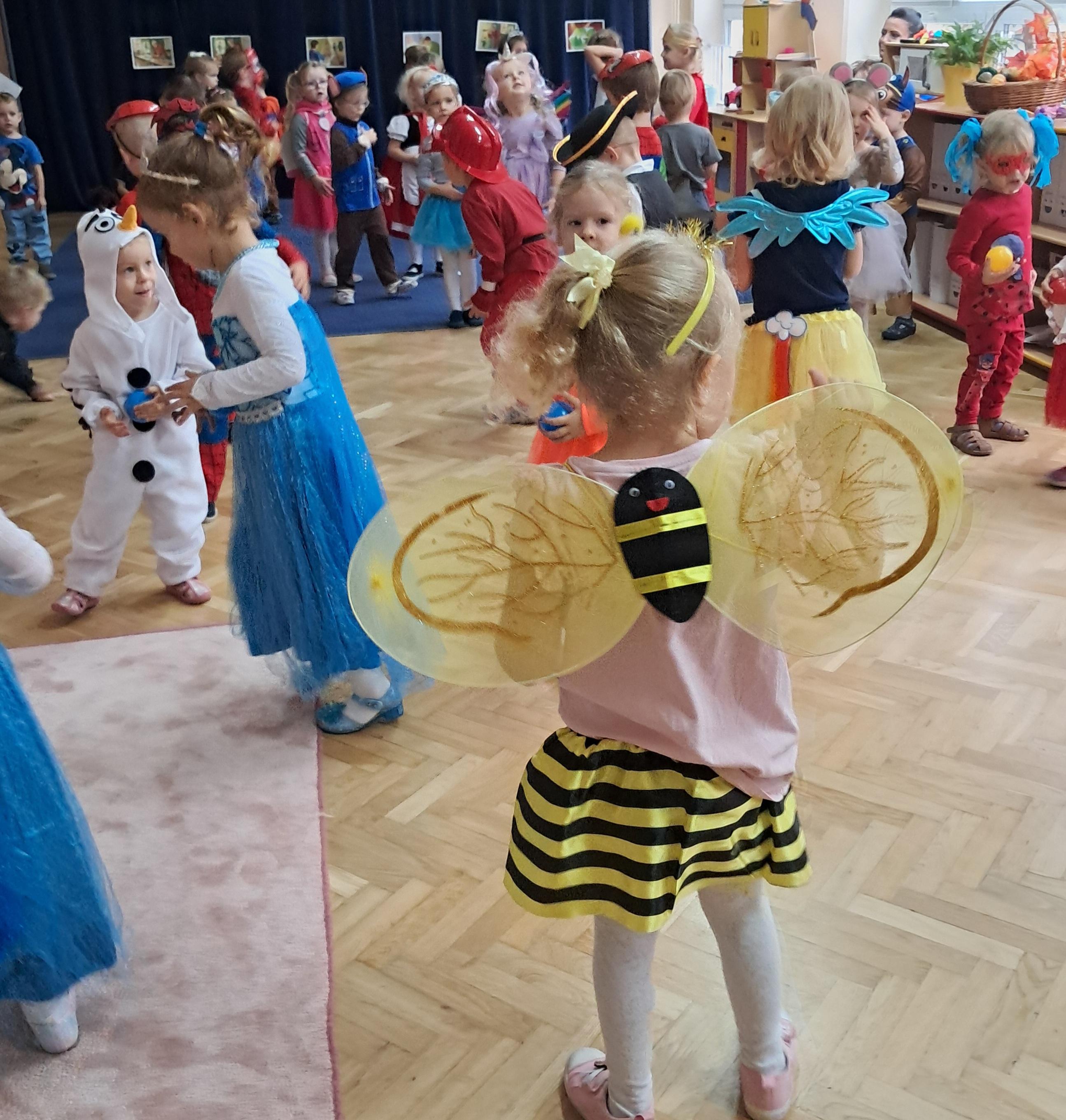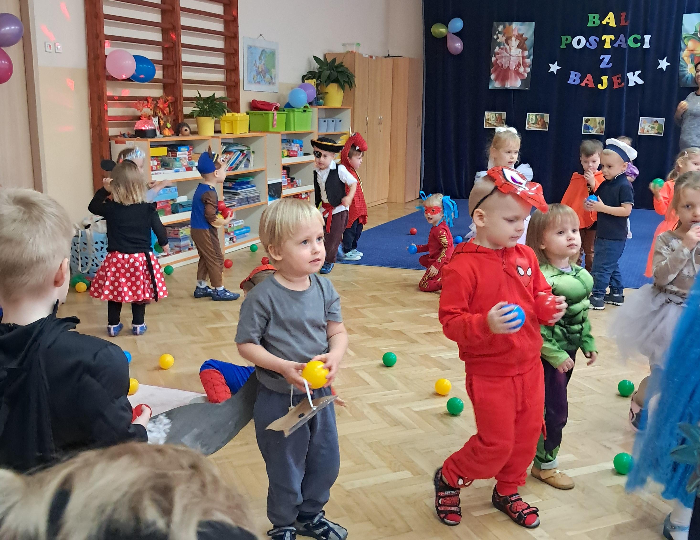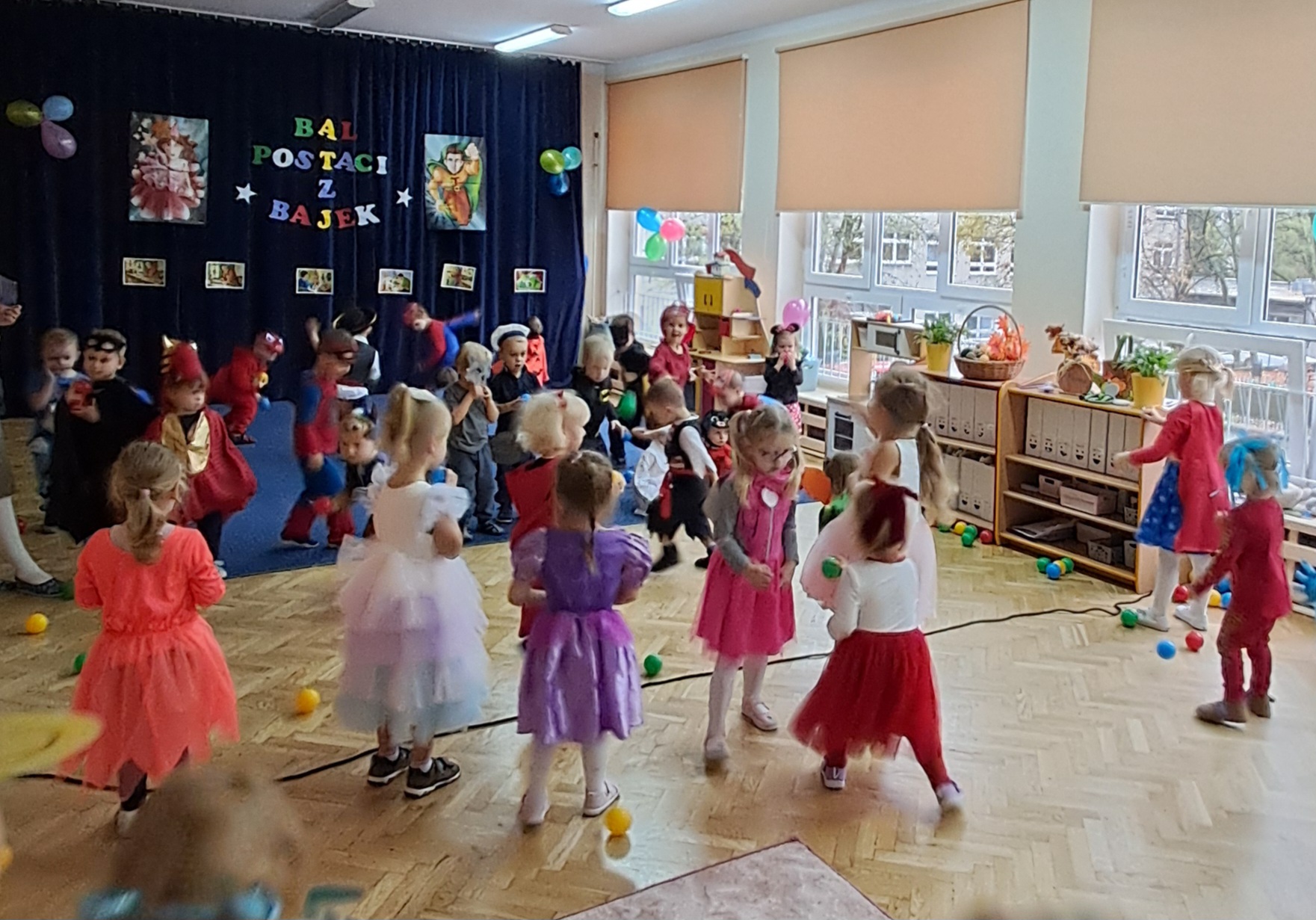W naszym przedszkolu odbył się wyjątkowy Bal Postaci z Bajek. Dzieci przyszły przebrane za swoich ulubionych bohaterów, a kolorowe stroje, taniec i wspólna zabawa stworzyły prawdziwie magiczną atmosferę. Podczas balu nie zabrakło muzyki, konkursów i uśmiechów, a przedszkolaki miały okazję przenieść się do świata swoich ukochanych bajek.