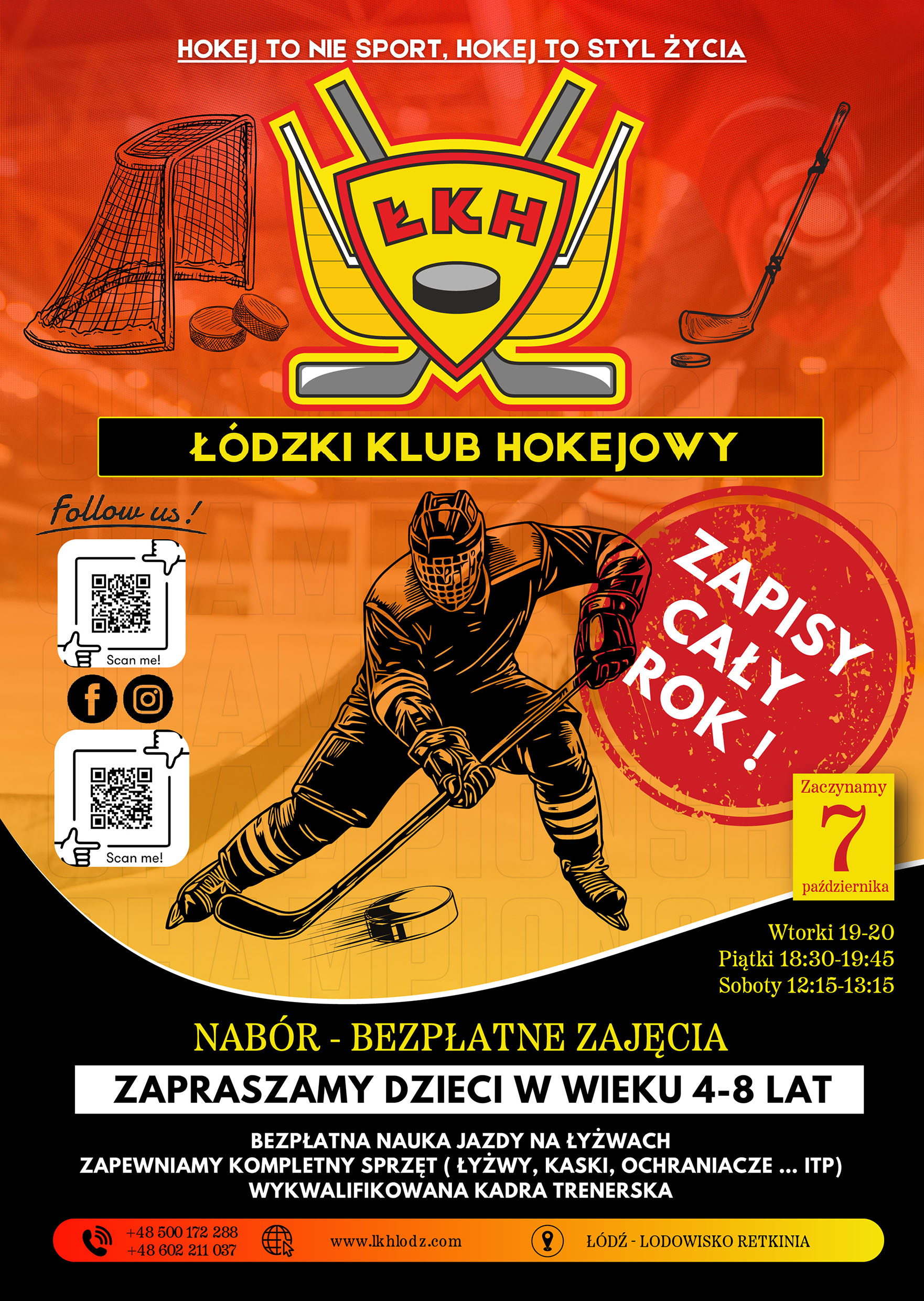 Łódzki Klub Hokejowy zaprasza dzieci w wieku 4-8 lat na popołudniowe zajęcia nauki jazdy na łyżwach.