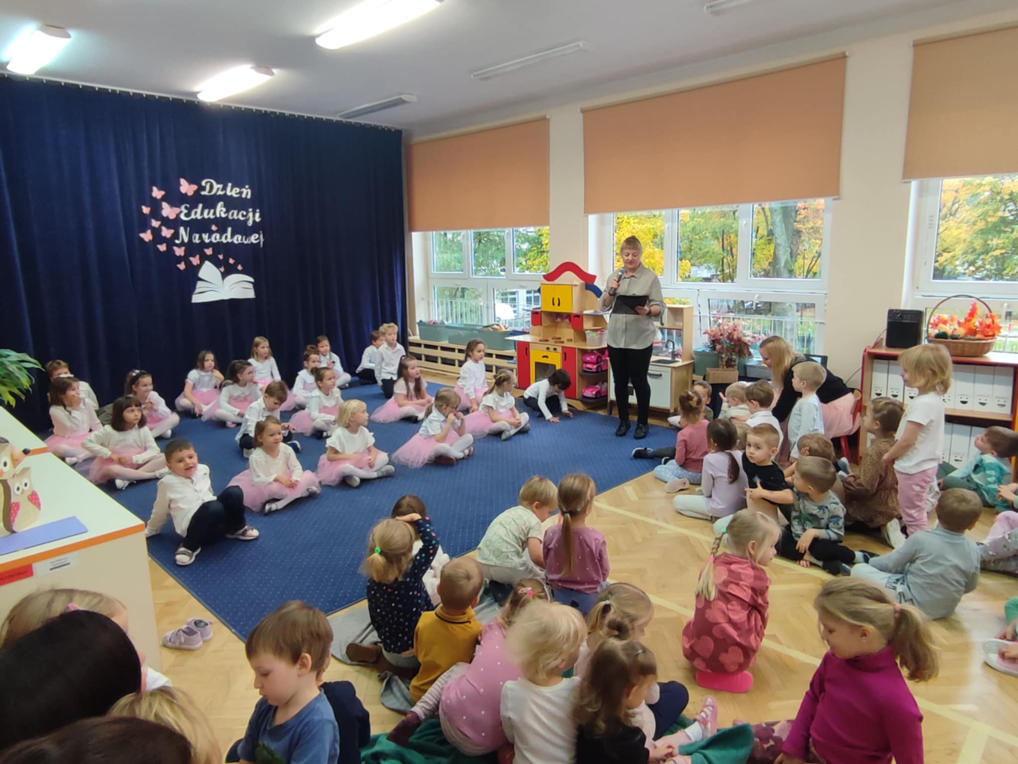 14 października obchodziliśmy w naszym przedszkolu Dzień Edukacji Narodowej – wyjątkowe święto wszystkich pracowników oświaty. Tego dnia cała społeczność przedszkolna zebrała się w jednej sali, aby wspólnie świętować i podziękować za codzienny trud, serce i zaangażowanie w wychowanie najmłodszych.