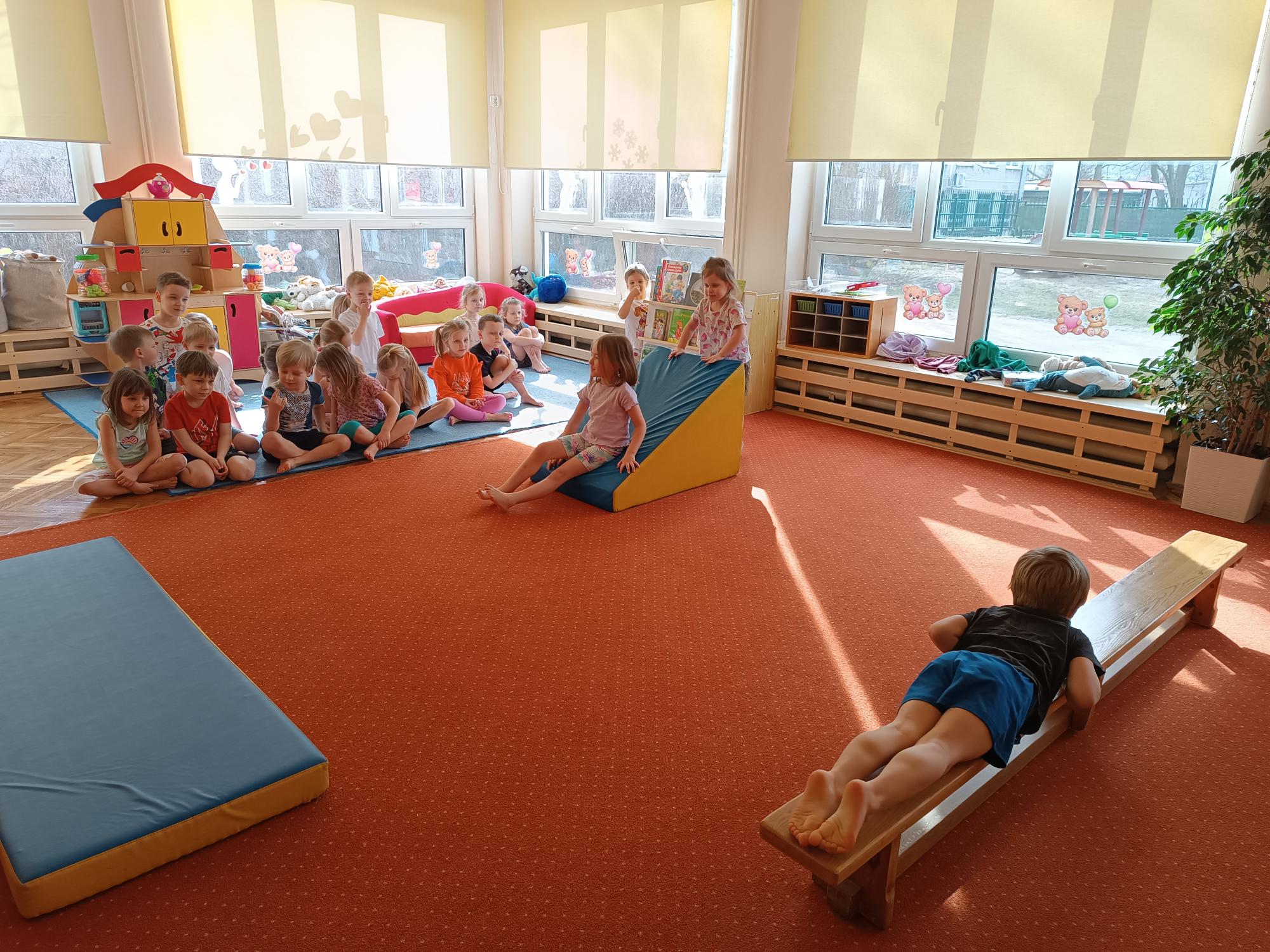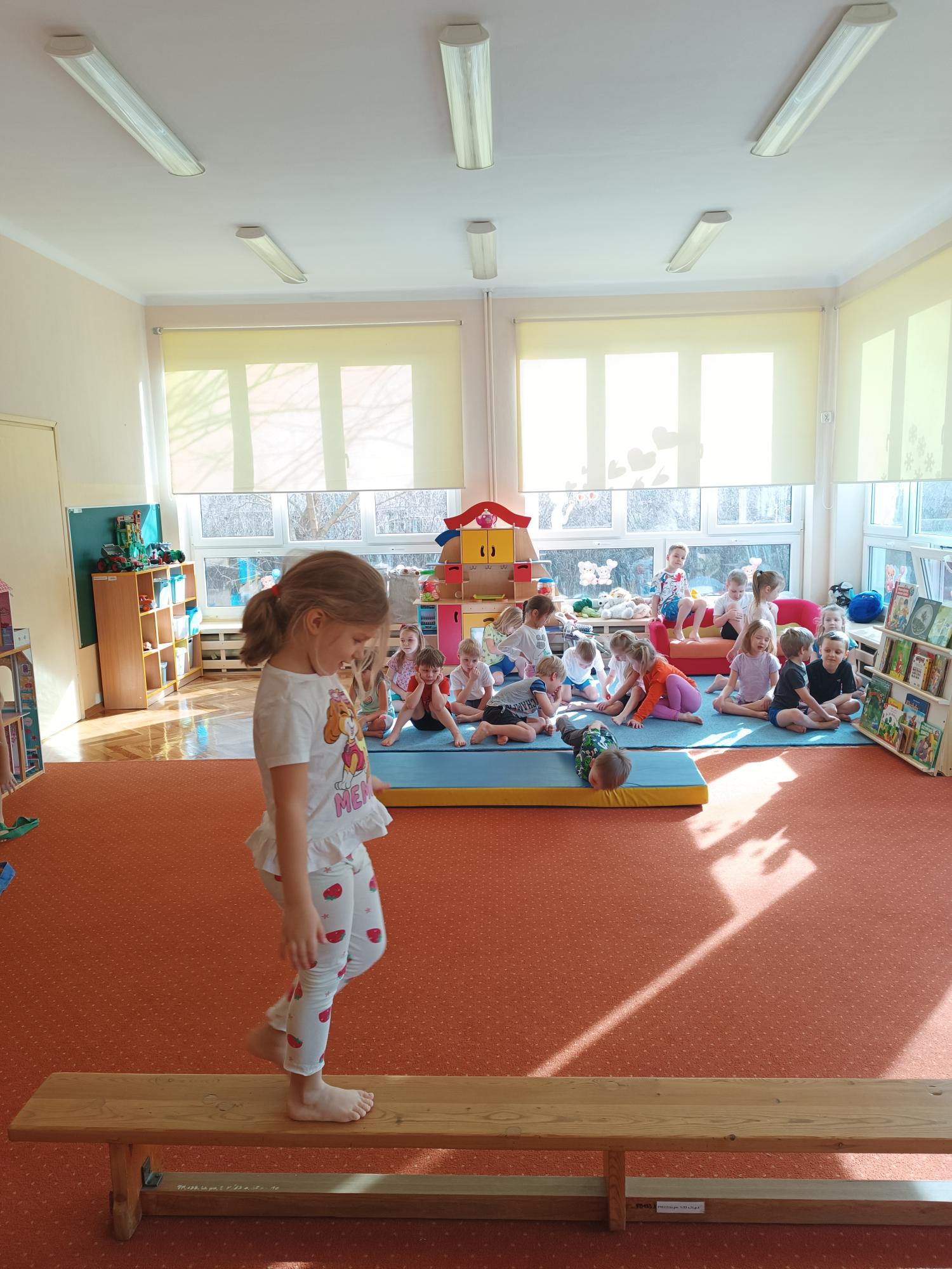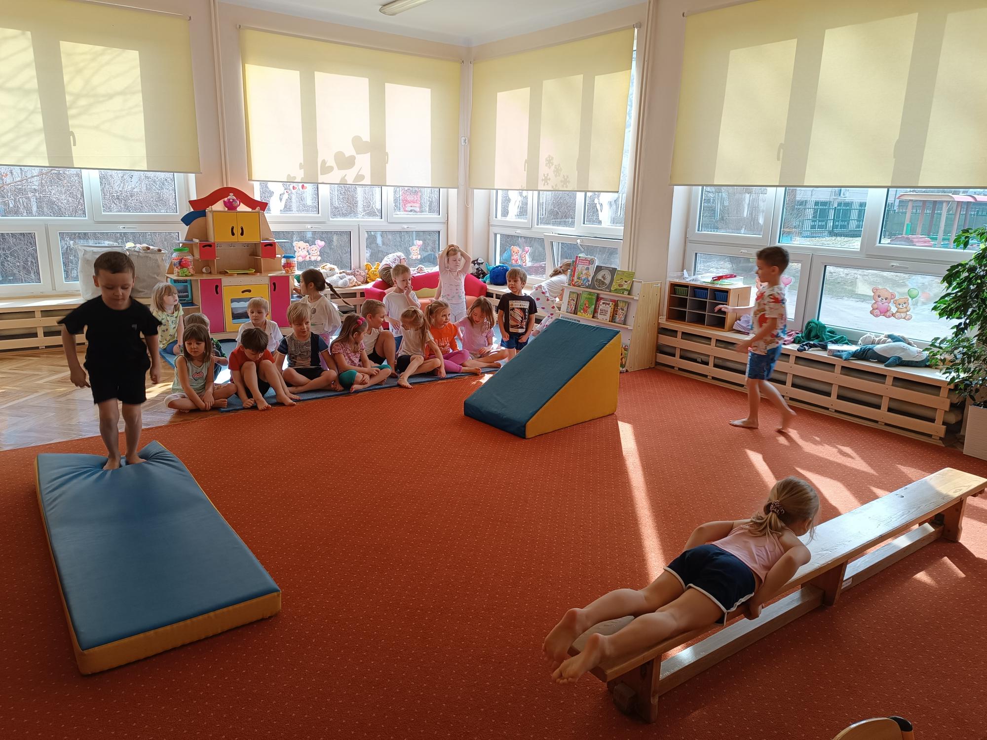Podczas zajęć ruchowych dzieci rozwijały motorykę dużą. Poprzez różnorodne zabawy i ćwiczenia ruchowe doskonaliły koordynację, równowagę oraz sprawność fizyczną. Ruch to nie tylko świetna zabawa, ale także ważny element harmonijnego rozwoju dziecka.