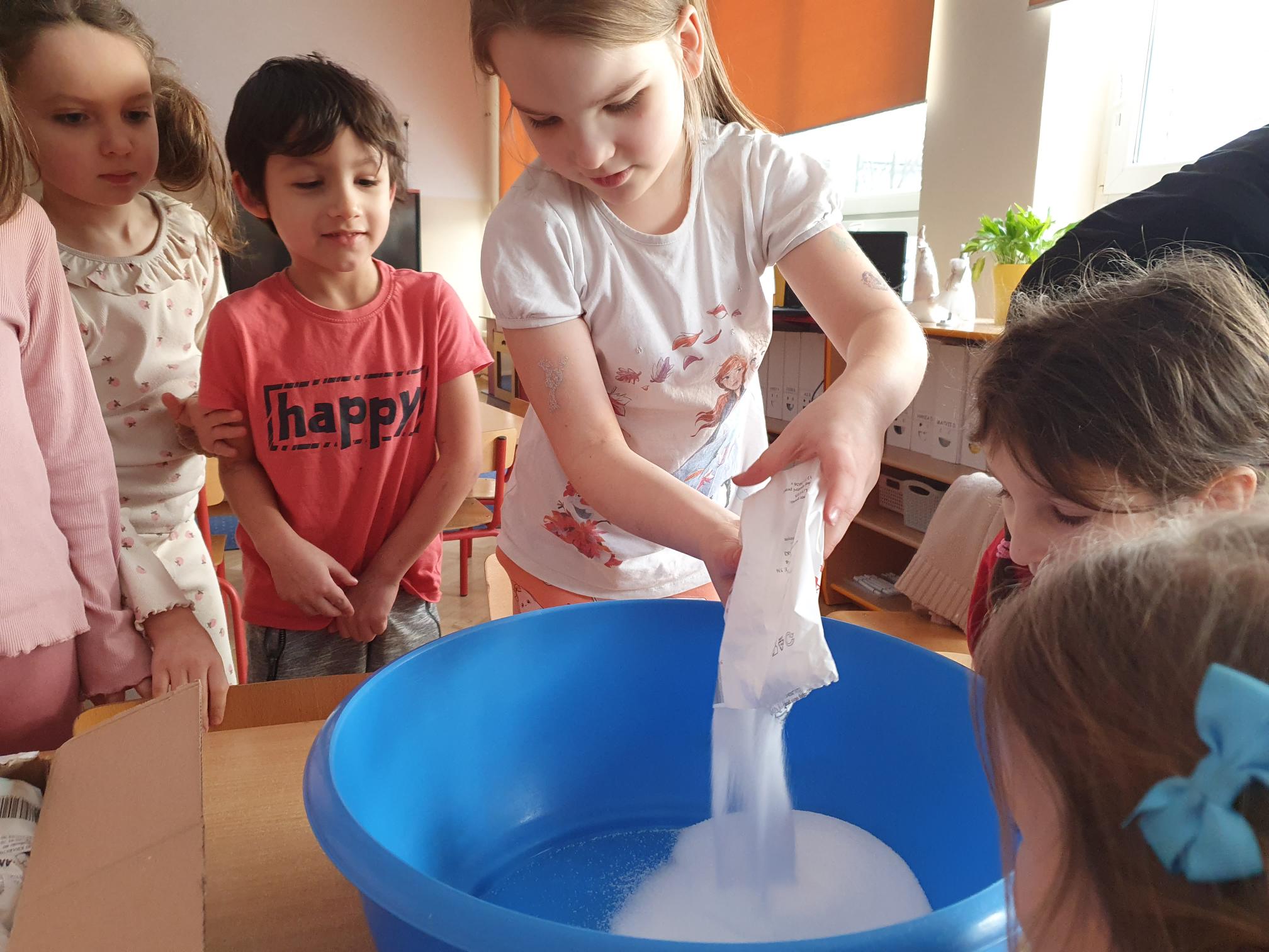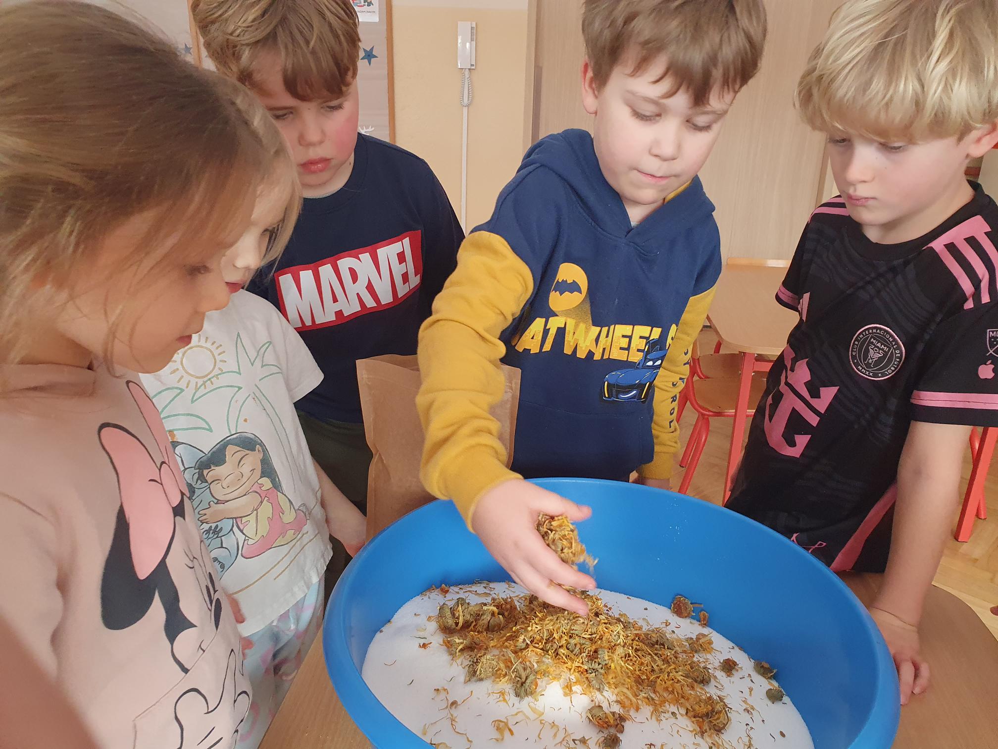 Dziś grupa Tygrysków przygotowywała prezenty dla swoich Babć i Dziadków. Przy okazji dzieci świetnie się bawiły, uczestnicząc w zabawach sensorycznych, które rozwijały zmysły.