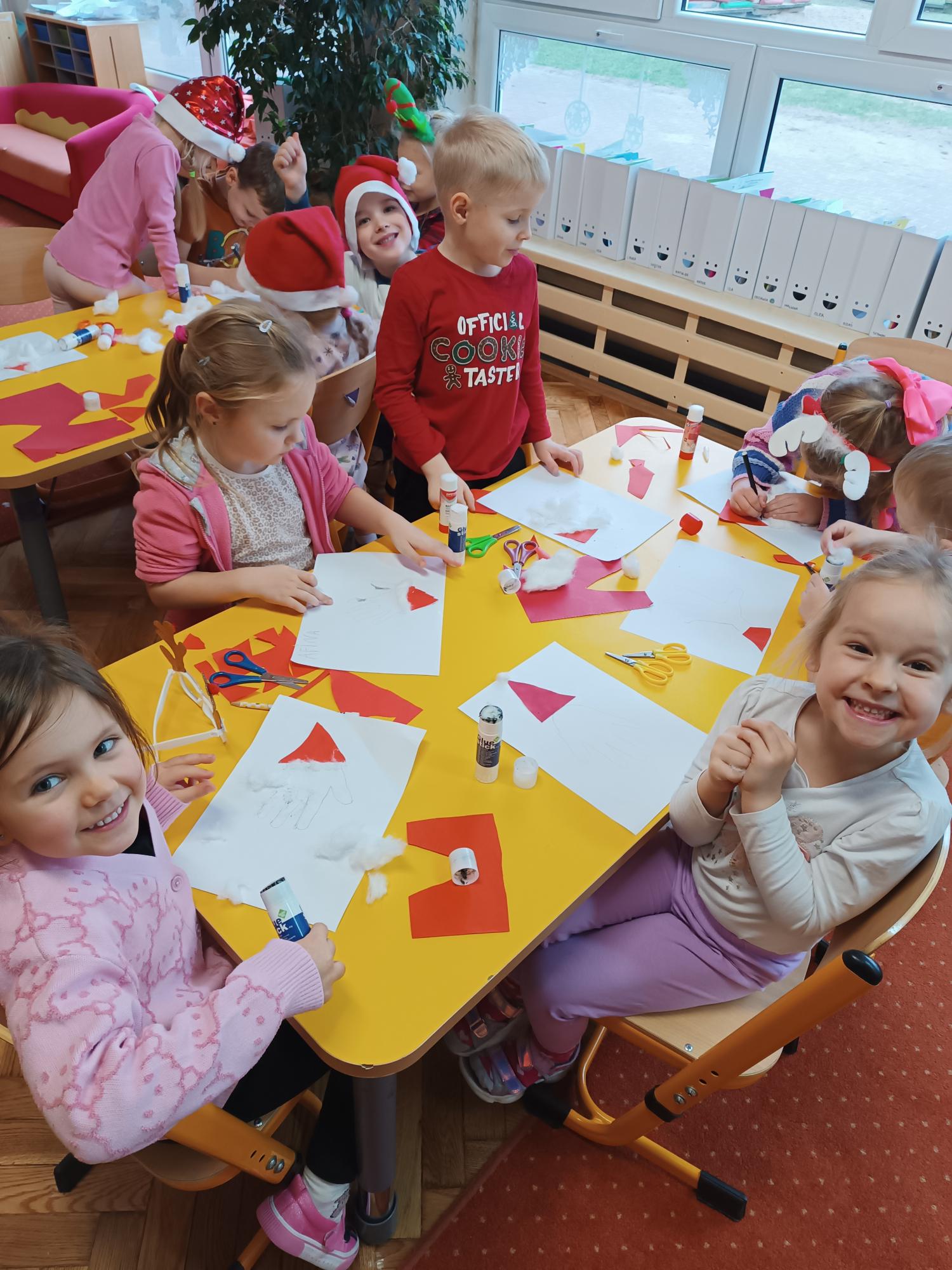 Z okazji Mikołajek dzieci spędziły wyjątkowo radosny i twórczy czas. Wspólnie ubierały choinkę, ucząc się współpracy i dzielenia świąteczną radością. Następnie z zaangażowaniem tworzyły prace plastyczne o tematyce świątecznej. Największą niespodzianką była wizyta Mikołaja, który obdarował dzieci uśmiechem i drobnymi upominkami.