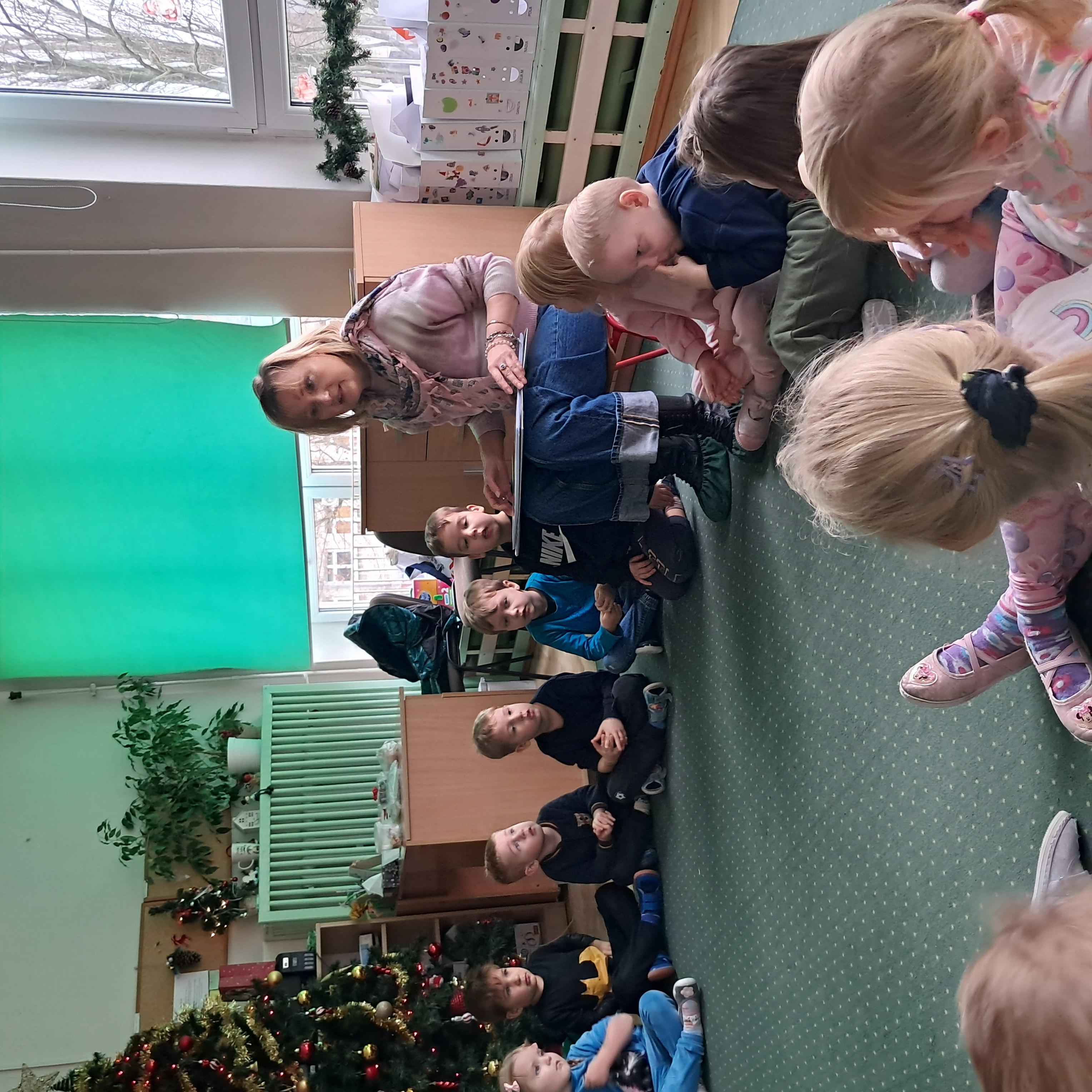 Dzieci uczestniczyły w warsztatach edukacyjnych pt. "Piernikowe tradycje", które poprowadziła Pani z Biblioteki Pedagogicznej. Spotkanie miało na celu przybliżenie dzieciom tradycji bożonarodzeniowych oraz wprowadzenie ich w świąteczny nastrój.