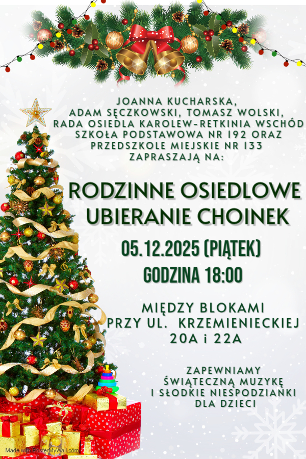 Wydarzenie odbędzie się w piątek, 5 grudnia 2025 roku o godz. 18:00, między blokami przy ul. Krzemienieckiej 20A i 22A.