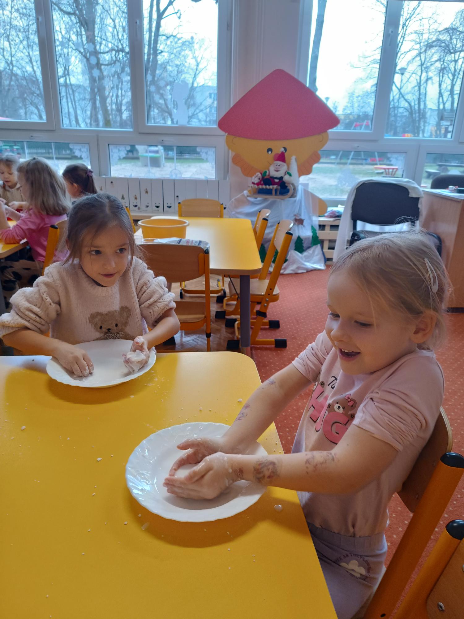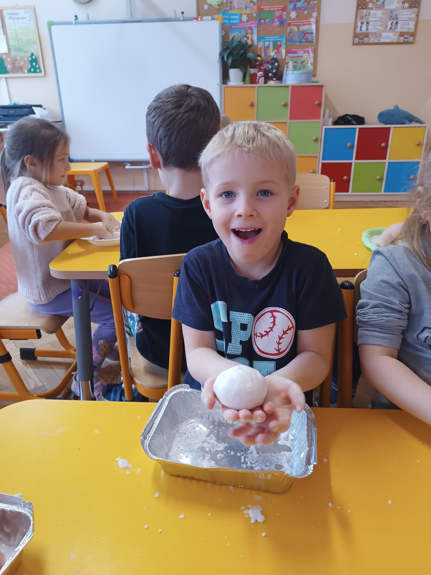 Zima bez śniegu zachęciła nas do wzięcia udziału w zabawach badawczo - sensorycznych z wykorzystaniem cieczy nienewtonowskiej. Podczas zajęć dzieci obserwowały nietypowe właściwości substancji - sprawdzały, jak zachowuje się ona pod wpływem nacisku i delikatnego dotyku. Zabawy pobudziły zmysły, rozwijały ciekawość poznawczą oraz zachęciły do wyciągania wniosków.