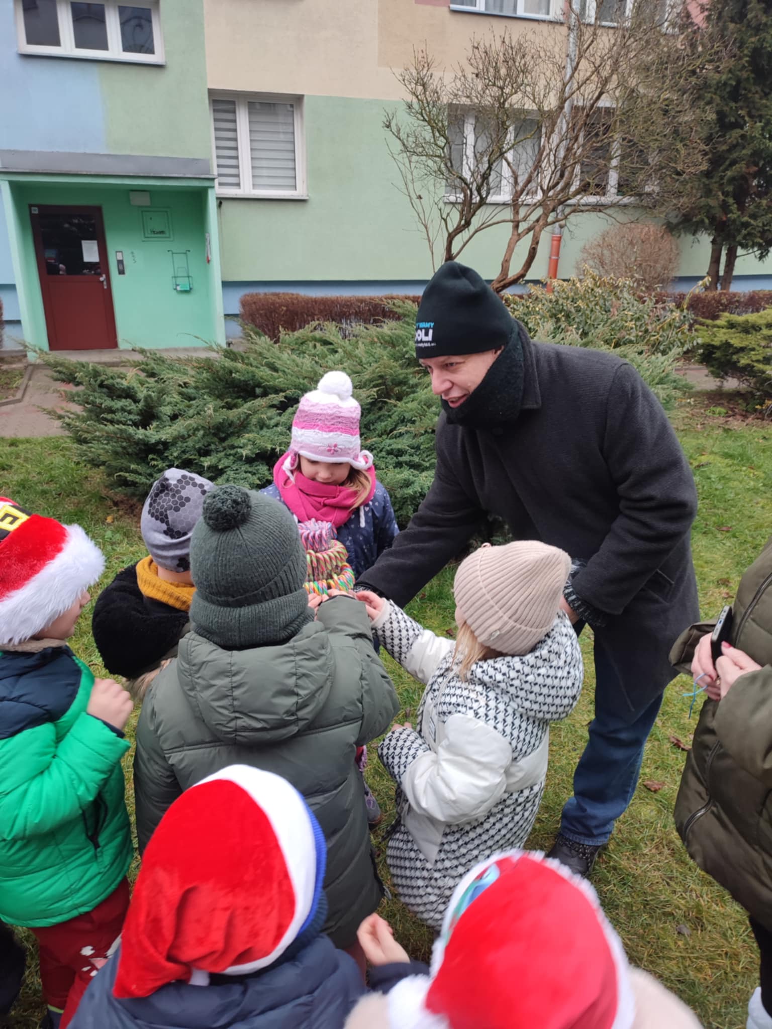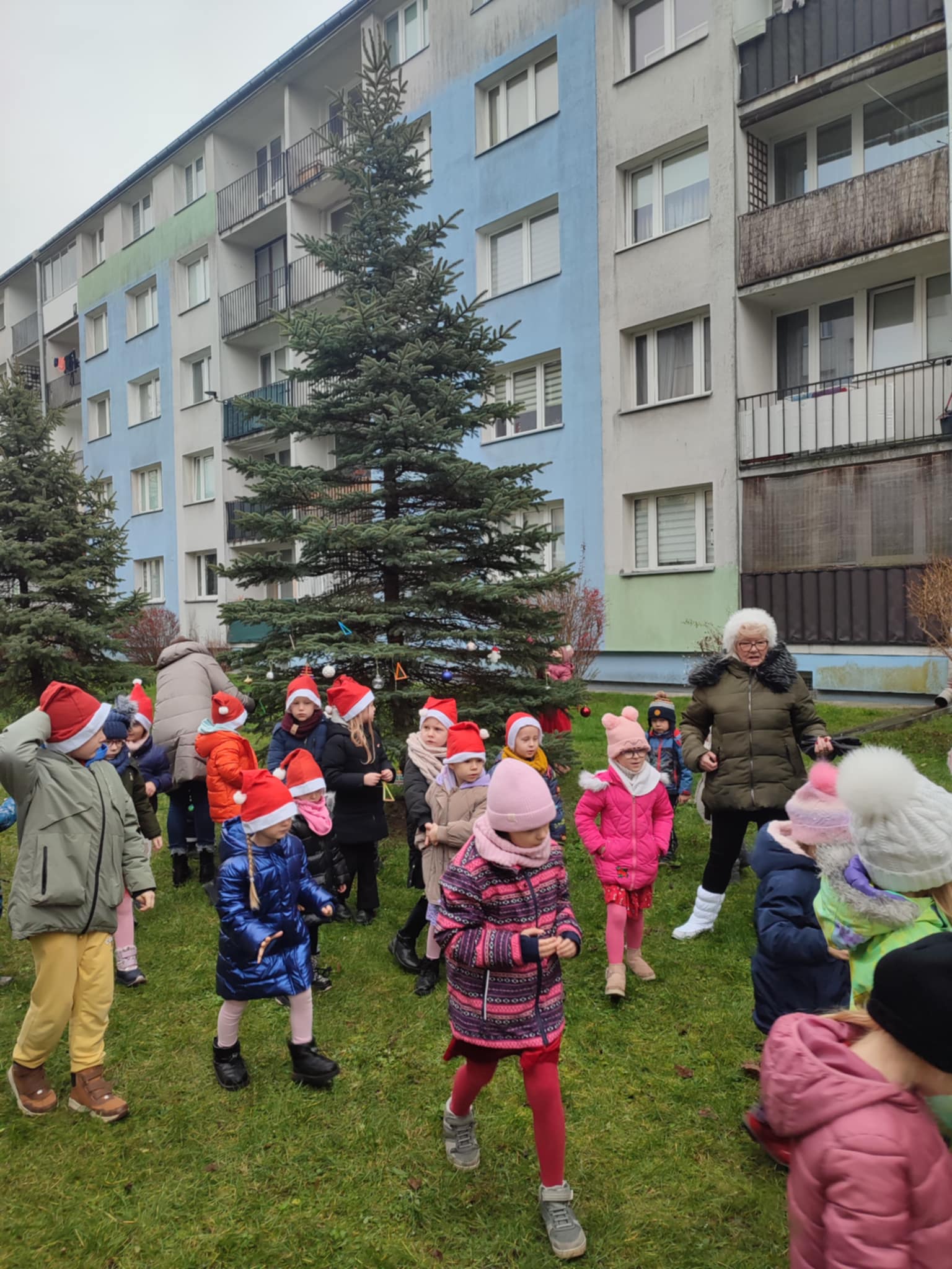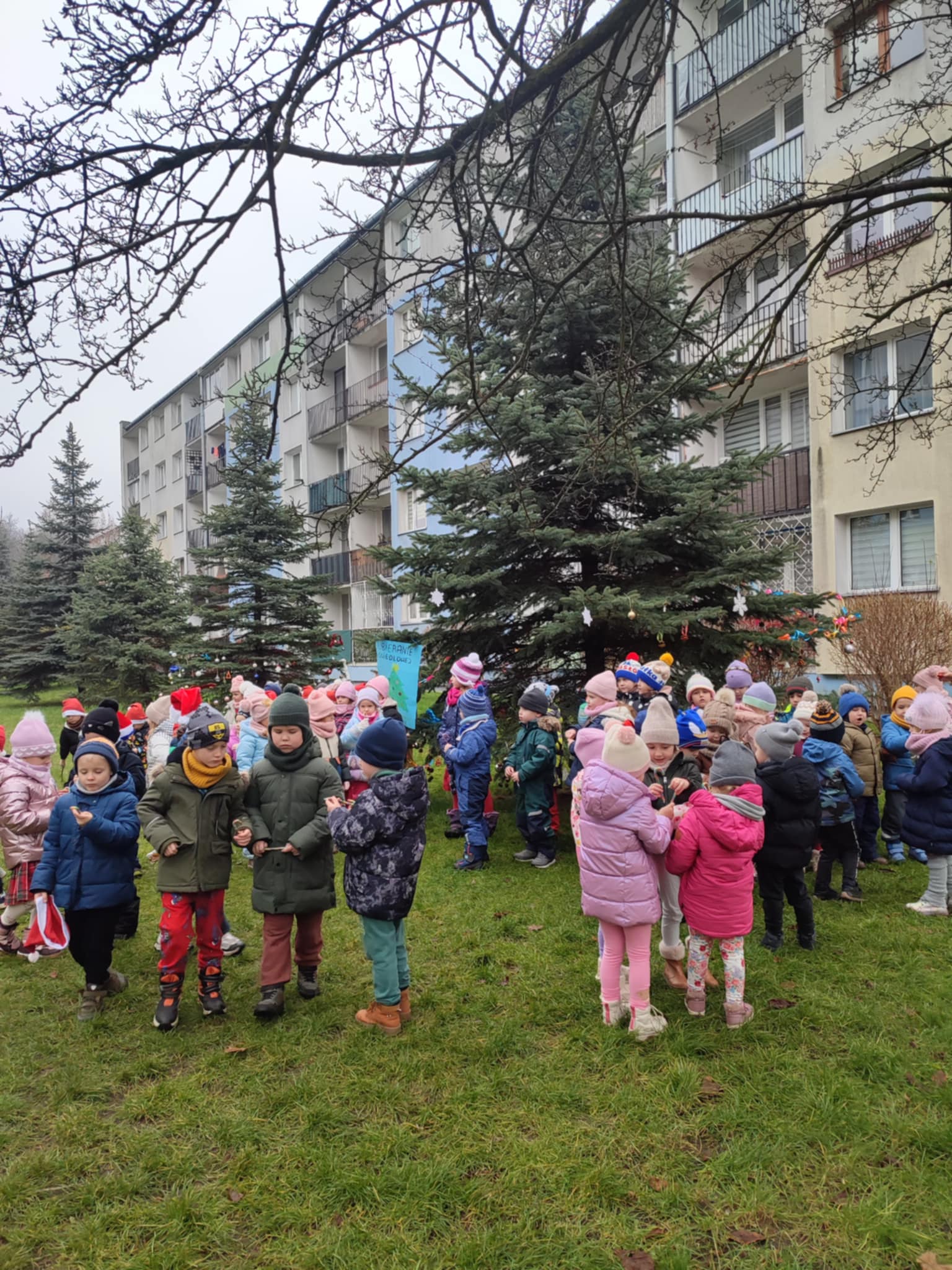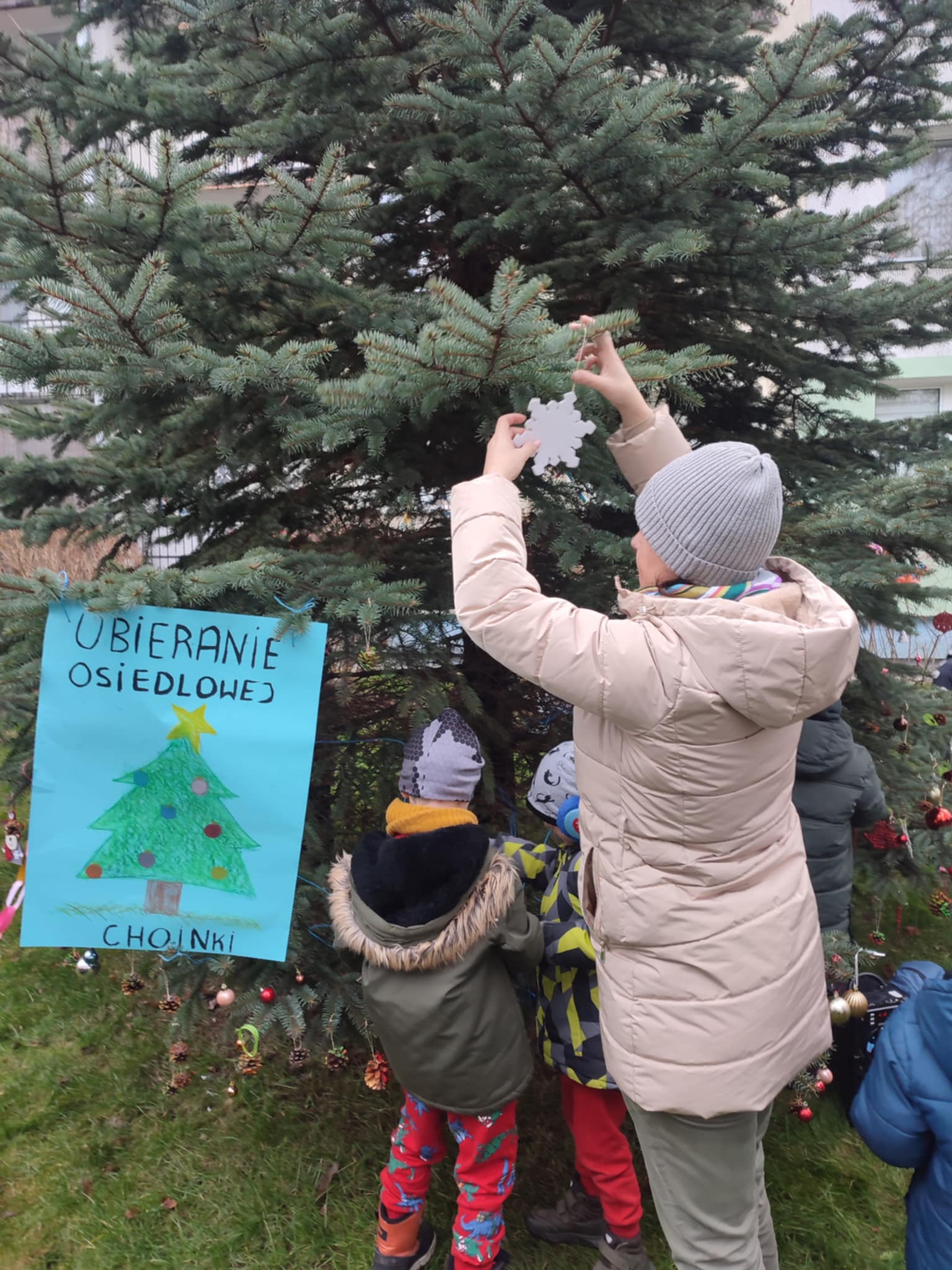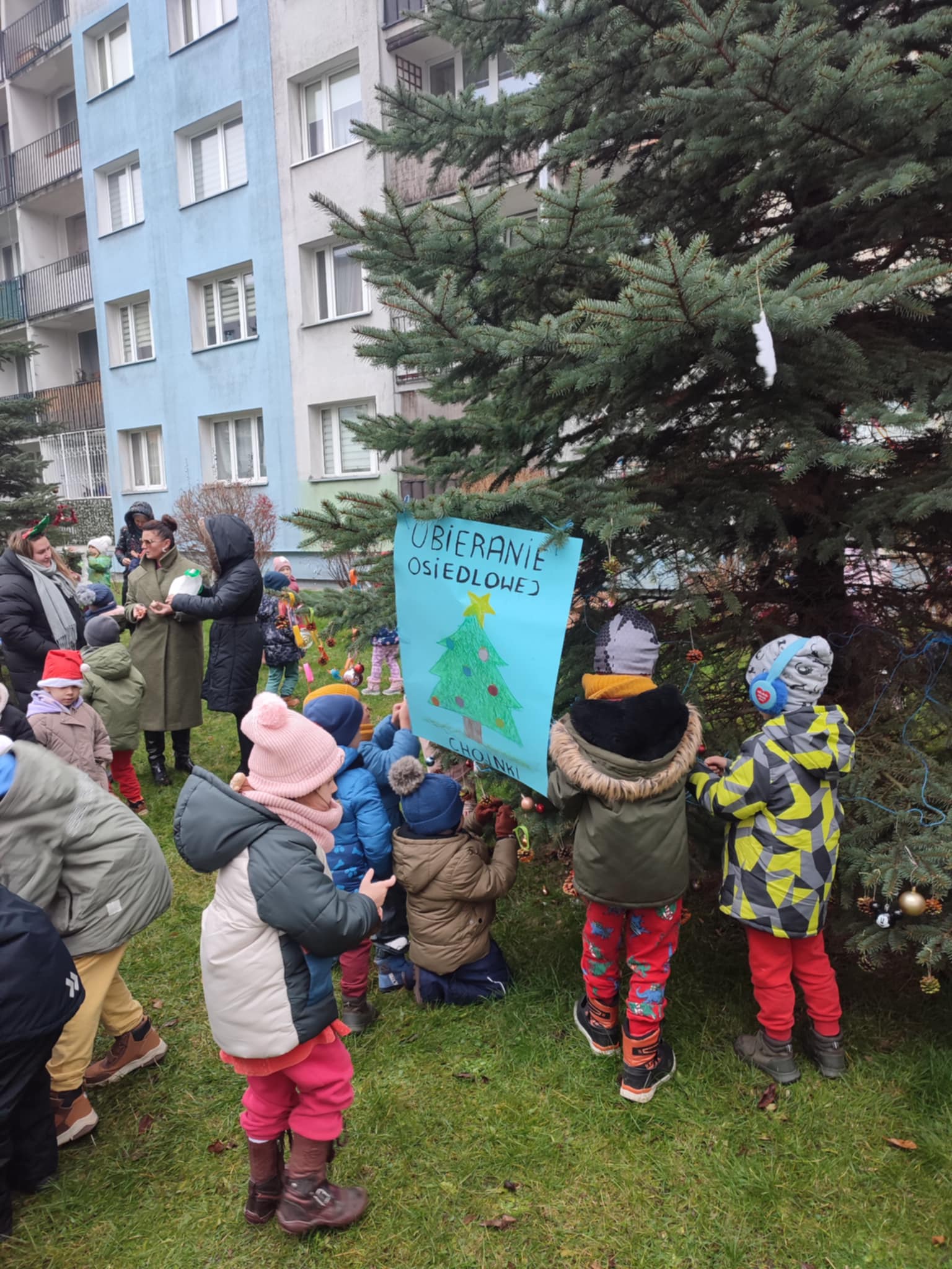 Dziś dzieci z grup Tygrysków, Motylków, Żabek i Misiów wzięły udział w osiedlowym ubieraniu choinek, zainicjowanym przez Radę Osiedla.