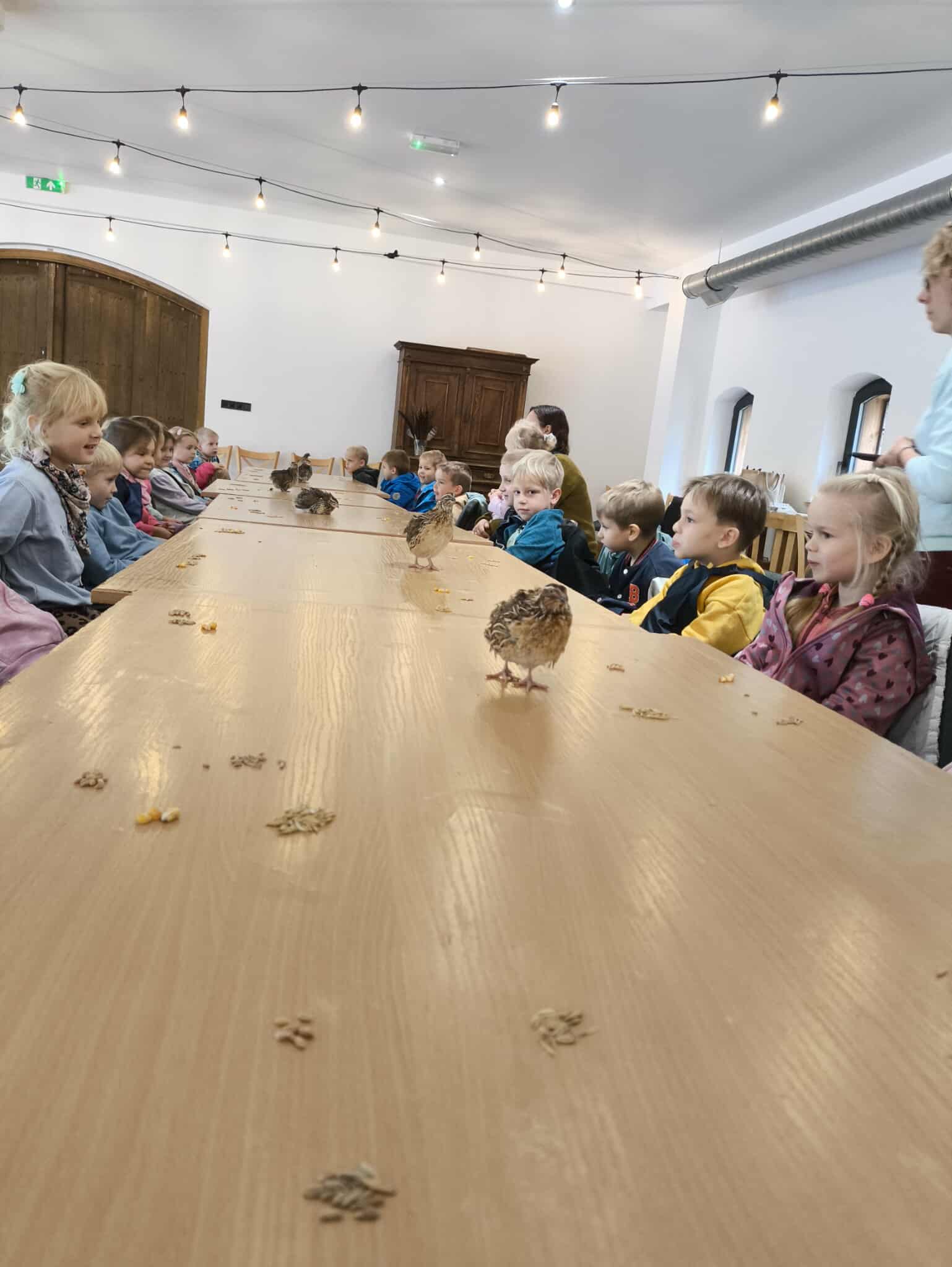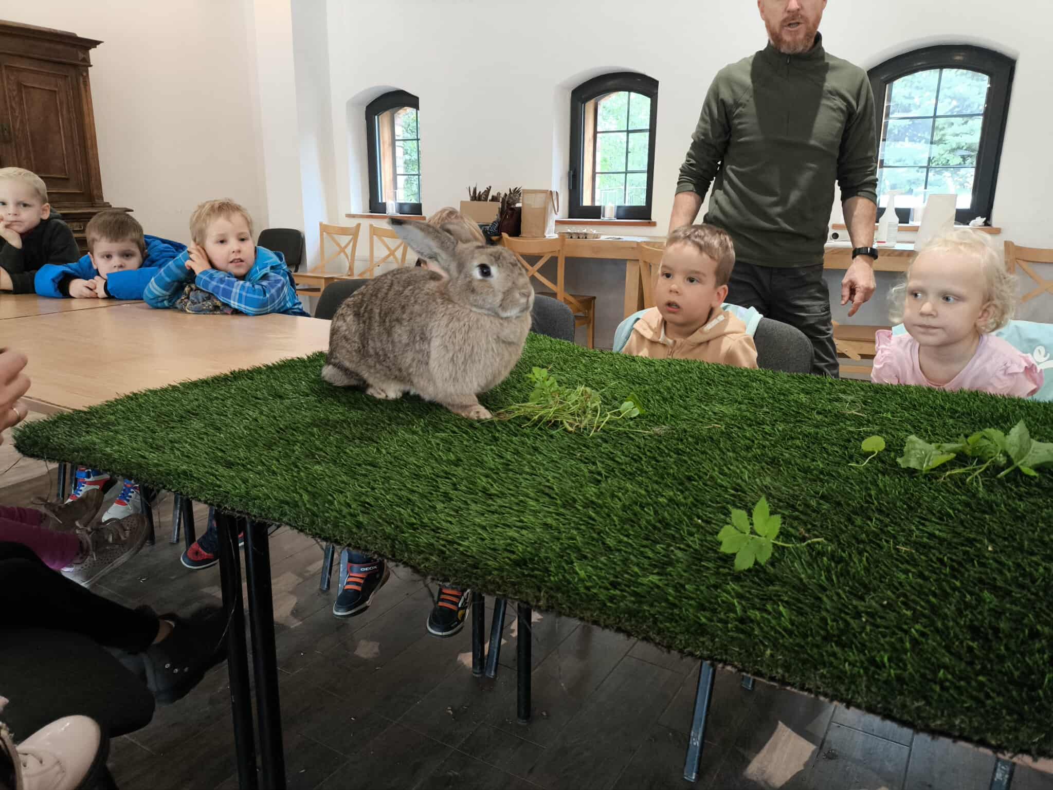 Podczas pobytu dzieci obserwowały kozy, a także uczestniczyły w ciekawych warsztatach „Piórko i futerko”, podczas których poznawały różne zwierzęta i ich cechy charakterystyczne. Miały również okazję pogłaskać króliki, zobaczyć pisklaki, a także przekonać się, jak wygląda życie na wsi z bliska.