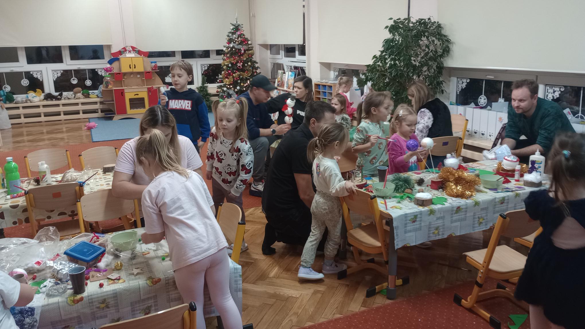 W naszej grupie odbyły się zajęcia otwarte, podczas których dzieci wraz z rodzicami wspólnie tworzyły stroiki, bombki i inne ozdoby świąteczne. Wspólna praca pozwoliła rodzinom aktywnie uczestniczyć w przygotowaniach do Świąt Bożego Narodzenia, a dzieci miały okazję pochwalić się swoimi pomysłami i kreatywnością.