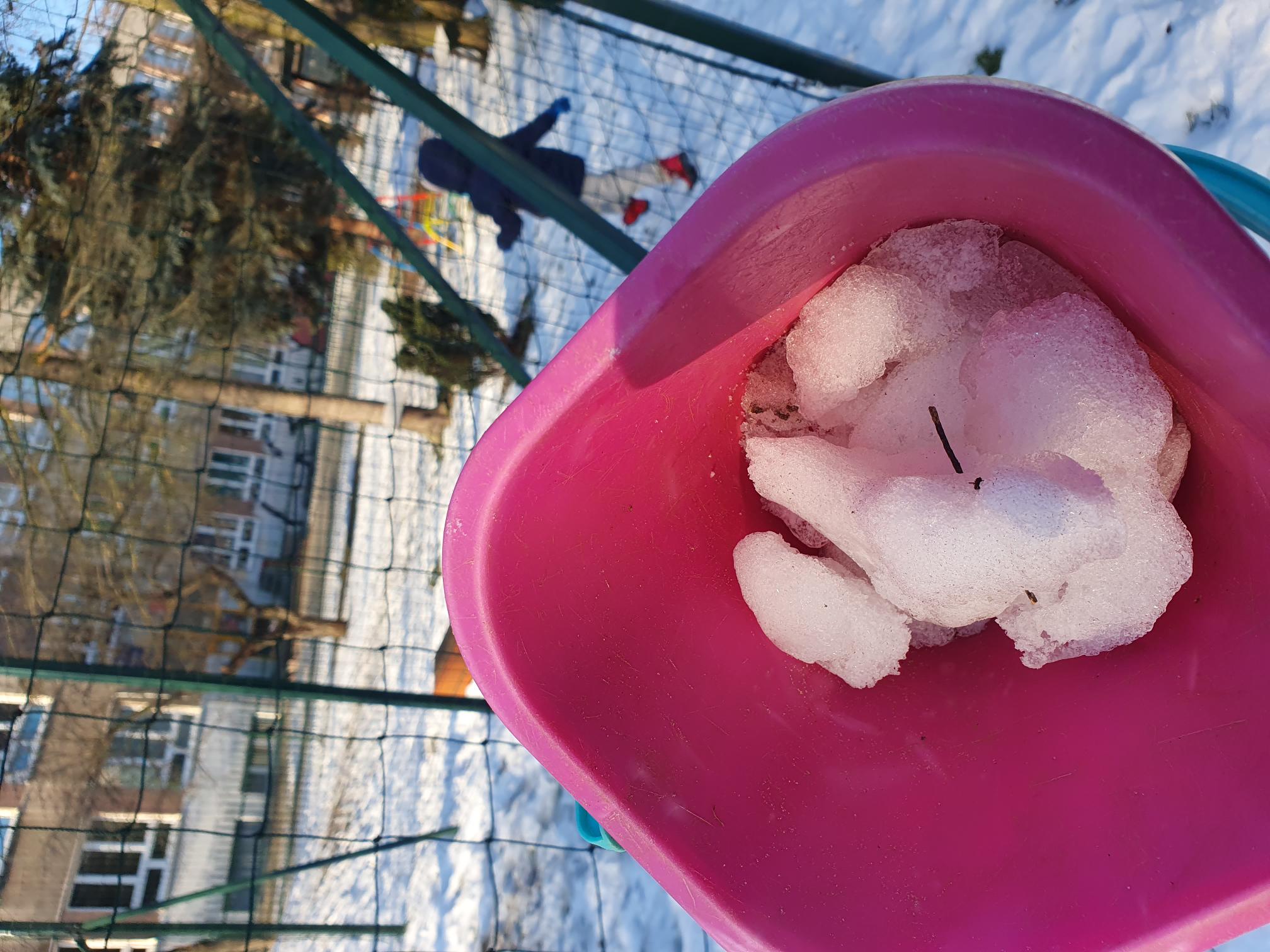 Dziś przeprowadziliśmy ciekawe eksperymenty ze śniegiem. Dzieci przyniosły śnieg w wiaderku do przedszkola i obserwowały, co się z nim stanie w ciepłym pomieszczeniu. Po pewnym czasie śnieg się rozpuścił i zamienił w wodę.